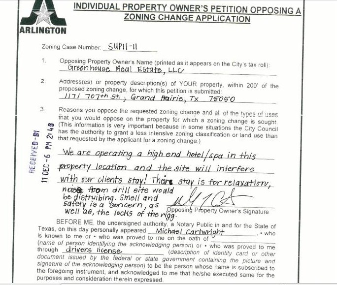 Overcoming Faith Drill Site which is still tabled ~ most likely until the elections are over. Mind you, it is crystal clear that a gas drilling site is not compatible with the vision for the Tierra Verde overlay. A future development for high-end exclusive homes is planned for that area. Nevertheless, here is how Frisco resident, Realtor, and Arlington Planning & Zoning member, Mrs. Vinyard, voted on that case: